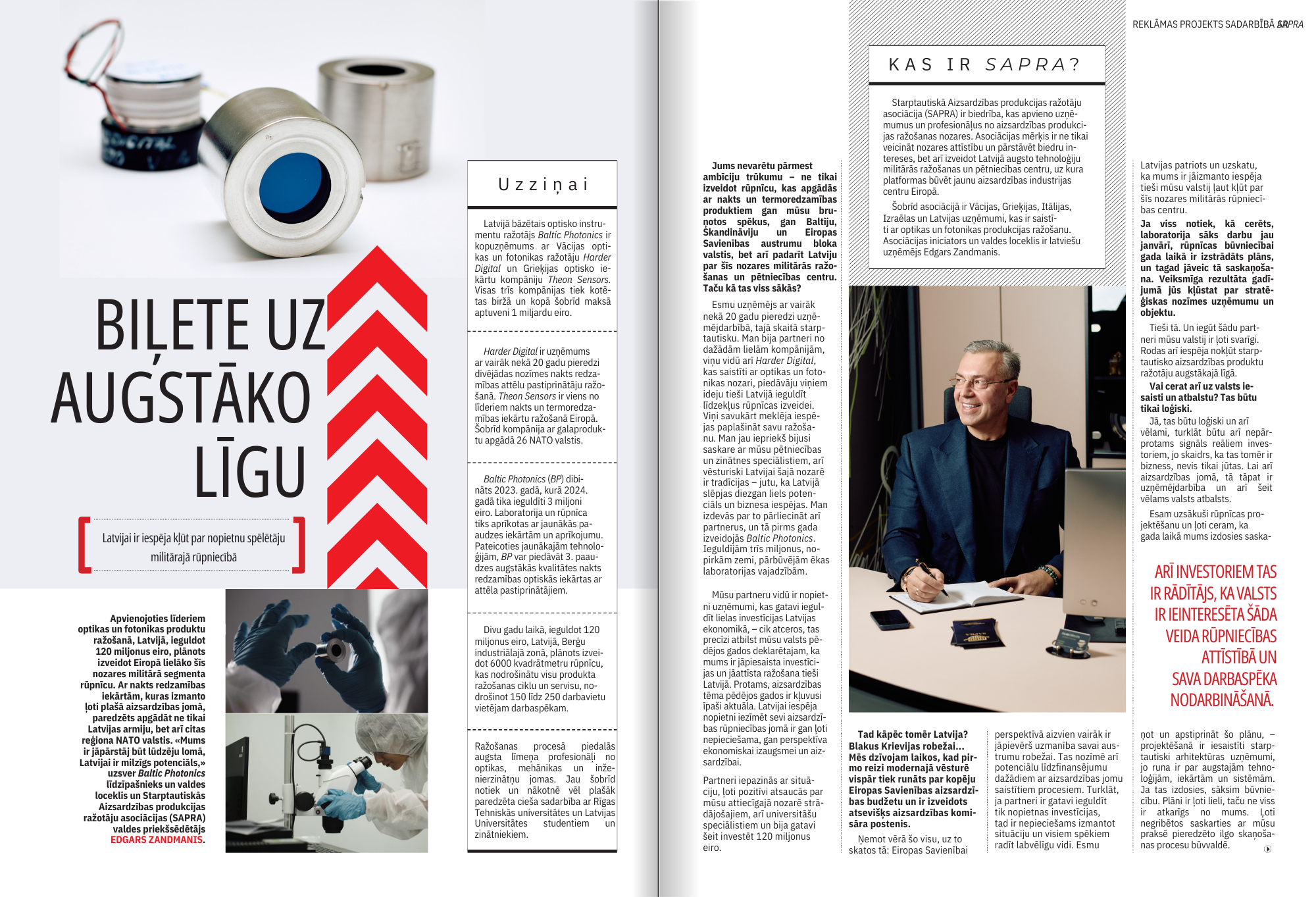 "Mums ir jāpārstāj būt lūdzēju lomā – Latvijai ir milzīgs potenciāls kļūt par nopietnu spēlētāju Eiropas aizsardzības industrijā," uzsver Baltic Photonics līdzīpašnieks un SAPRA valdes priekšsēdētājs Edgars Zandmanis.