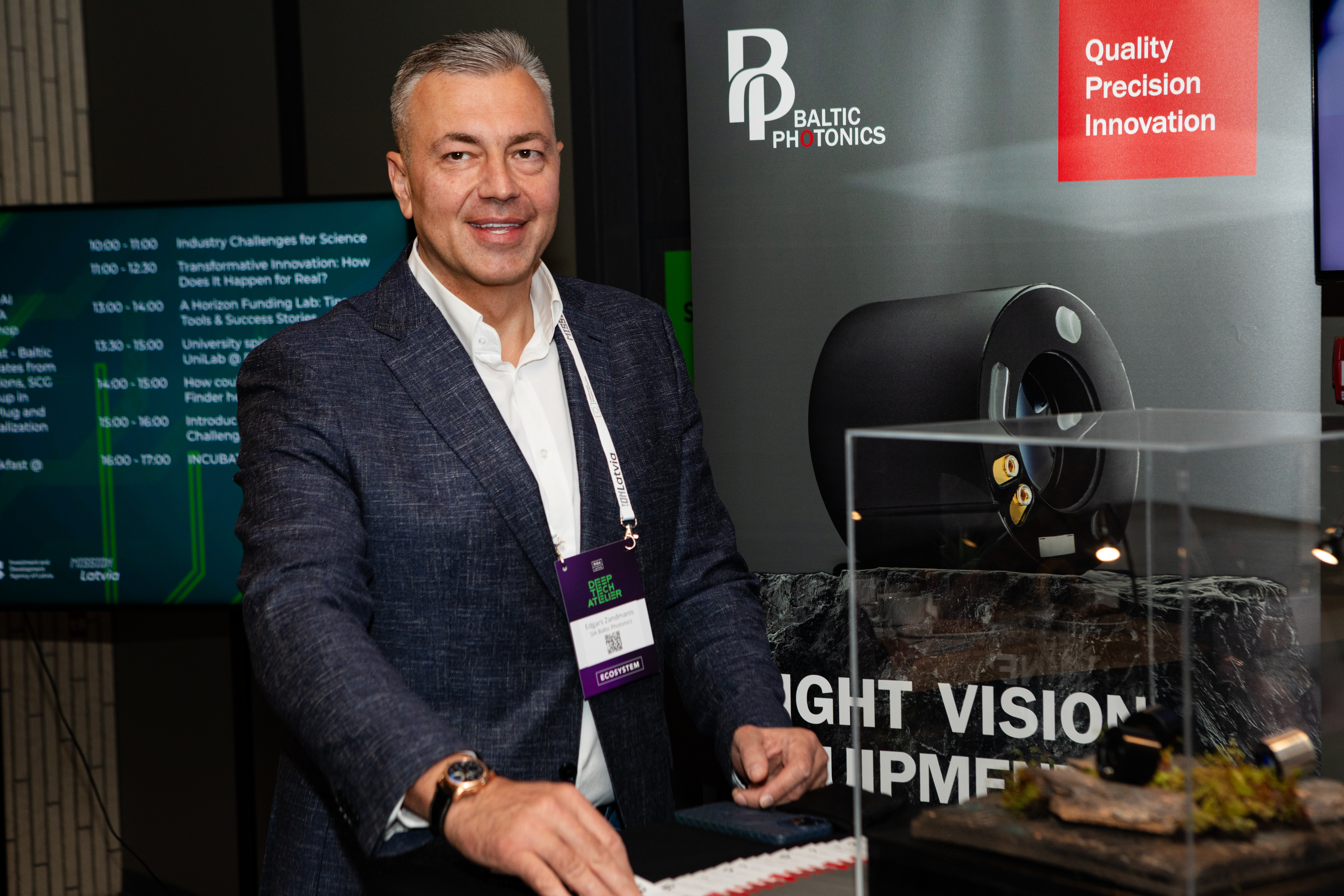 Latvijā izstrādāta nakts redzamības tehnoloģija piesaista uzmanību Deep Tech Atelier 2025 konferencē 16/05/2025Latvijā izstrādāta nakts redzamības tehnoloģija piesaista uzmanību Deep Tech Atelier 2025 konferencēLasīt vairāk2025. gada 16. maijā uzņēmums SIA “Baltic Photonics” piedalījās Deep Tech Atelier 2025 — vadošajā Baltijas reģiona zinātnes un tehnoloģiju konferencē, kas šogad īpaši pievērsās aizsardzības inovācijām, tehnoloģiju suverenitātei un drošības infrastruktūras stiprināšanai.